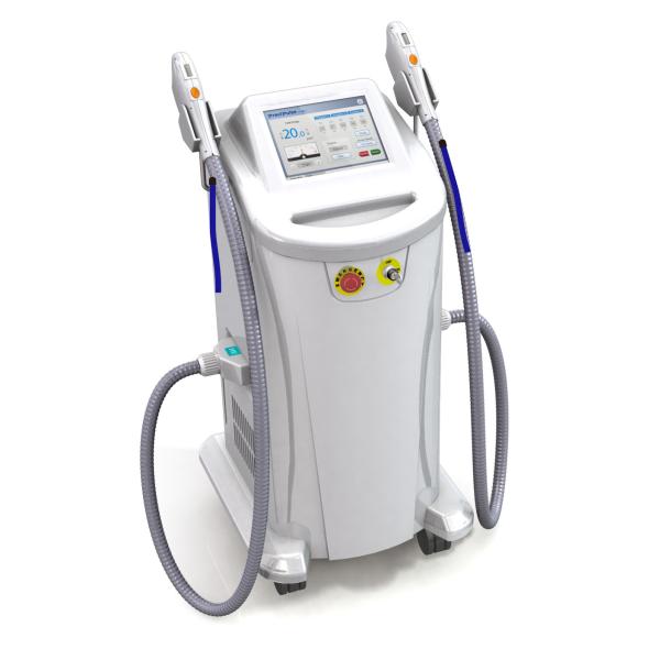 Elight system integrates IPL( Intense Pulsed Light), RF(Radio Frequency) and improved Cooling systems into one perfect system. They can work simultaneously. The Bipolar Radio Frequency deeply penetrates into the dermis of the skin. It can reduce wrinkles while IPL treatment is conducted.